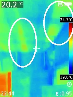 水分を含んでいても時間帯や太陽の当たり具合などで雨漏りの箇所の温度が上がったり、逆に下がったりもします。